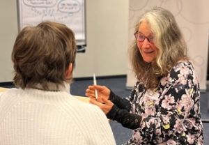 Britta Erich im Gespräch beim Mentorinnen-Netzwerktreffen im November 2023. Foto: © KWB e. V.